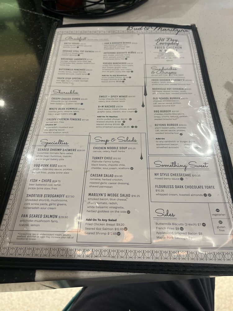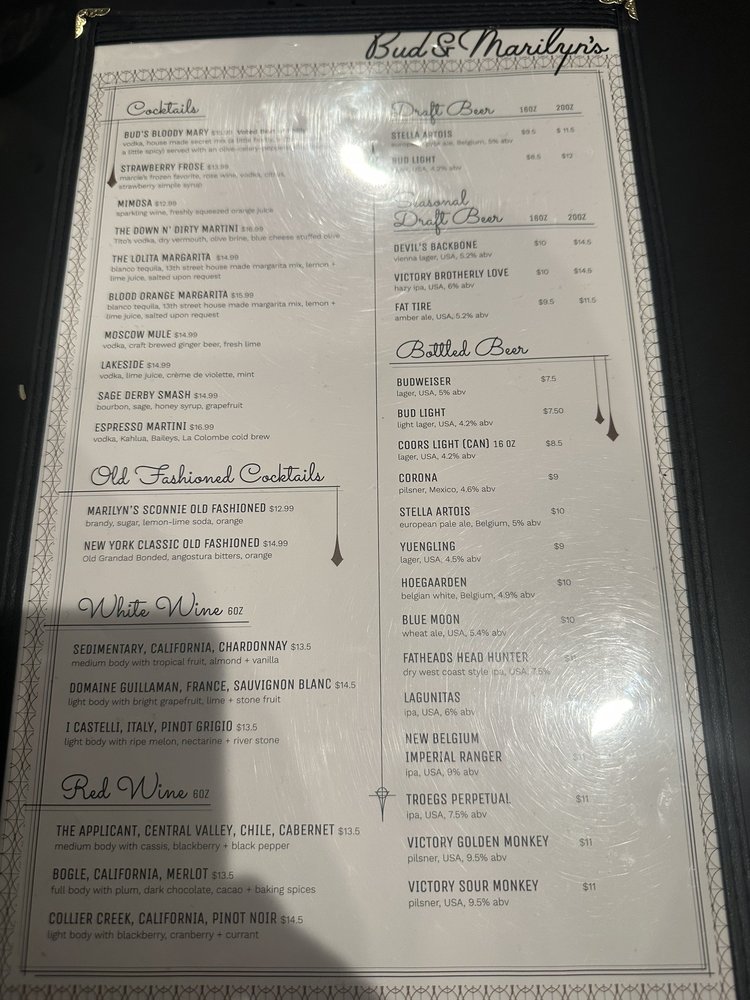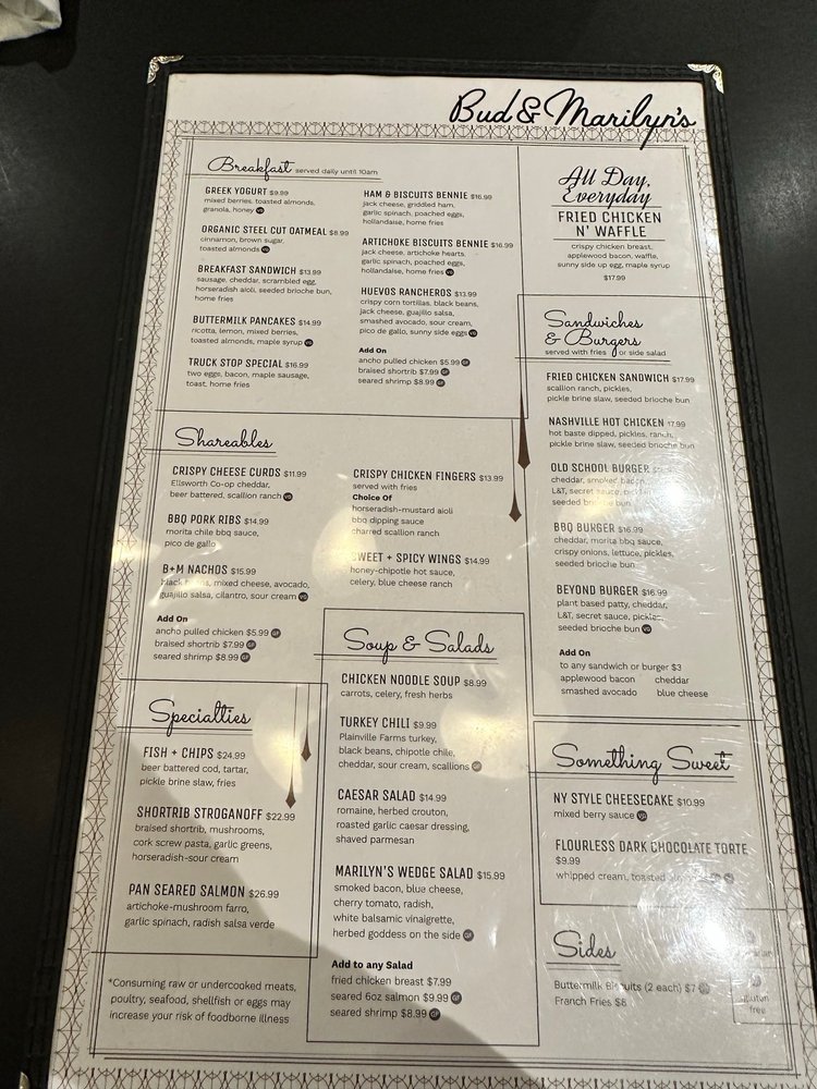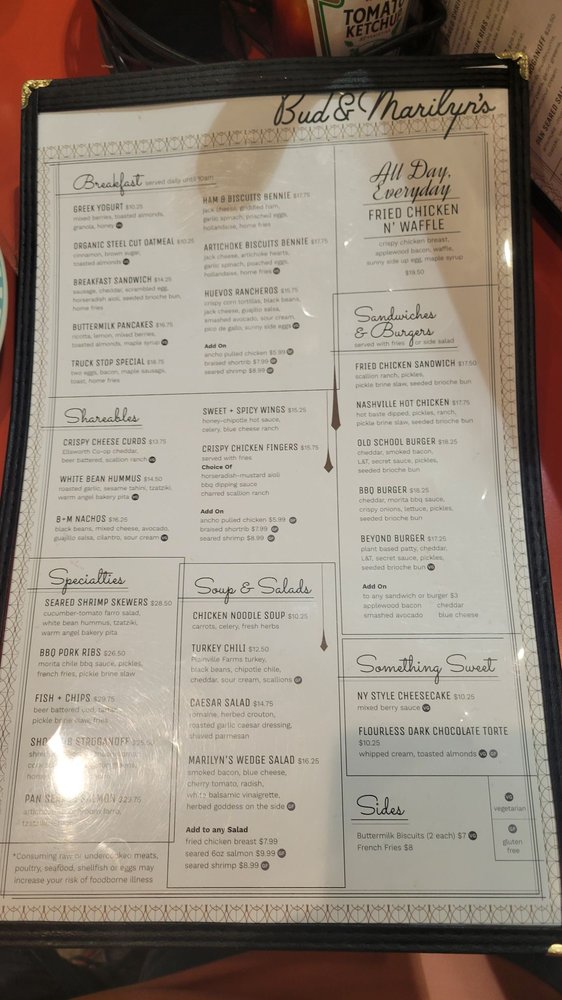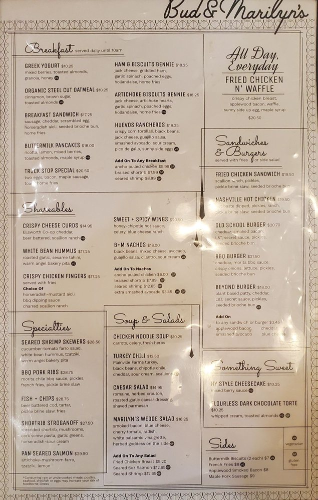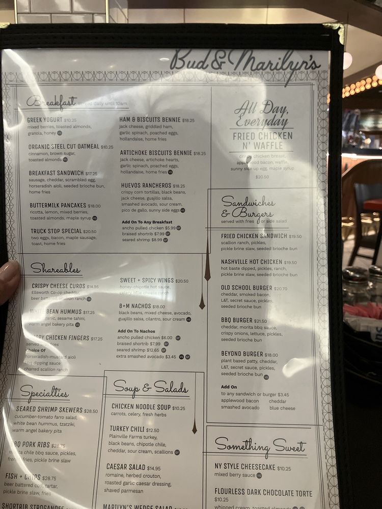 Bud & Marilyn’s Menu (Update 2025)