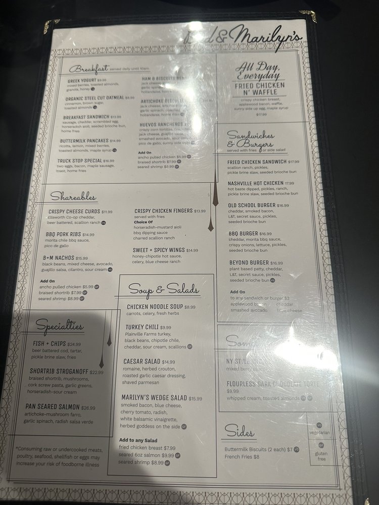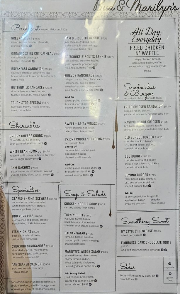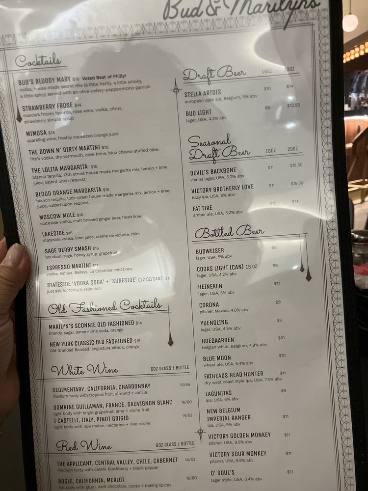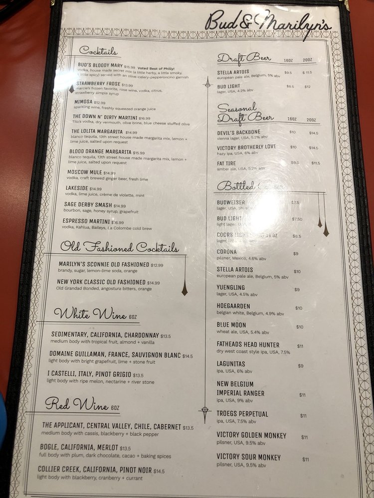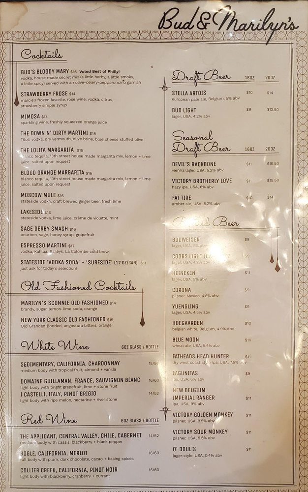 Bud & Marilyn’s Menu (Update 2025)